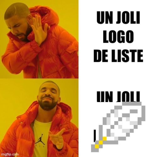 Meme fait par Justine parlant des listes sur la pixelwar