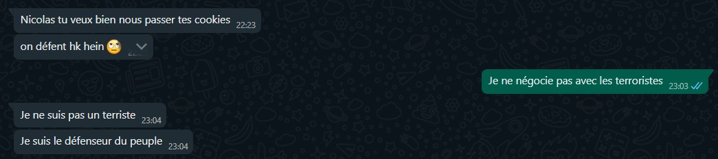Meme fait par Nicolas parlant des cookies de Thomas